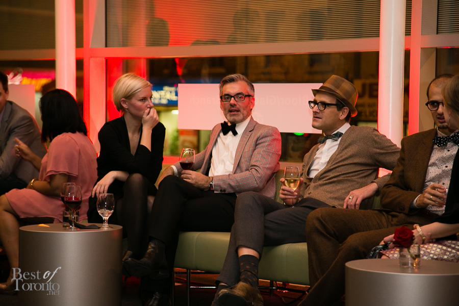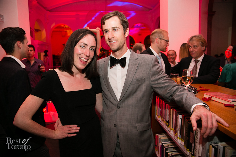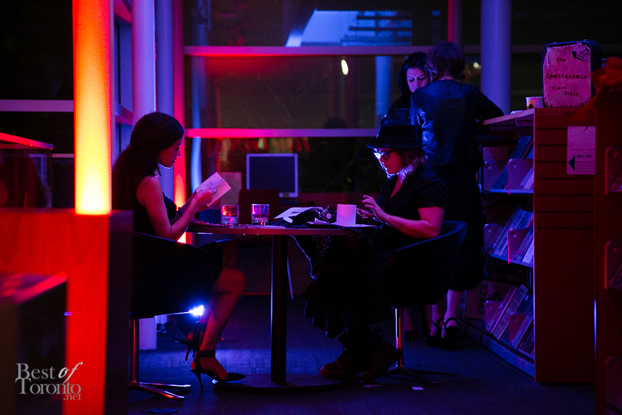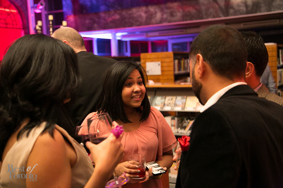 I really enjoyed all the careful attention to details of this well put-together event thrown by New Collection, The Toronto Public Library Foundation’s young patrons group. Even though it was the inaugural event, you could tell this was very well thought out. Everything was top notch: the decor, the entertainment by DJ Fathom and DJ GeeWizz, spoken word poet, magician Jonathan Pollock, and “Hush Hush” tattoos. It was great that there was enough drink and food stations (delectable oysters, gourmet donuts) to make the party more than a typical crowded-perpetually-standing-in-line party. Rather it was pleasant, spacious and enjoyable on all fronts. Even TV reporters and police officers came by with big smiles for this unique occasion.