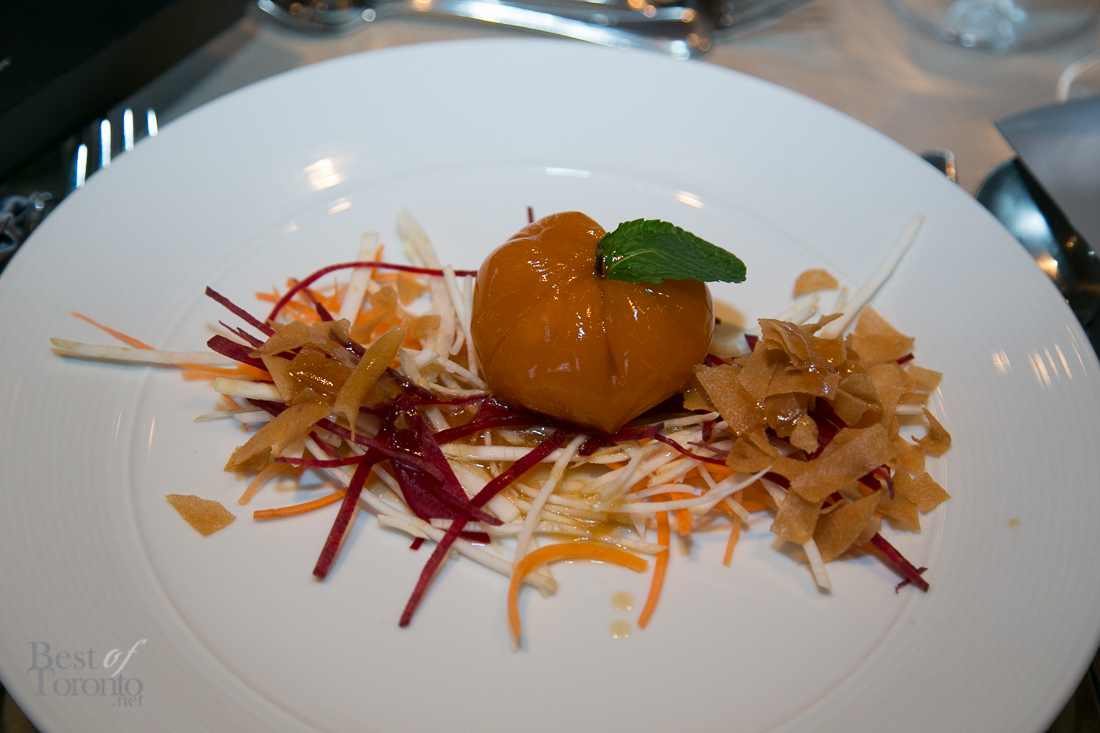 One amazing highlight this year was that the dinner menu was designed by Chef Alvin Leung, star of the new MasterChef Canada TV show on CTV (and fondly named “Demon Chef”). And, yes, he’s also recently been crowned a Michelin 3-Star Chef. He demonstrated his “X-treme” cuisine at the gala reception mixing ice cream with the Chinese liquors Moutai and “Rose Dew”.