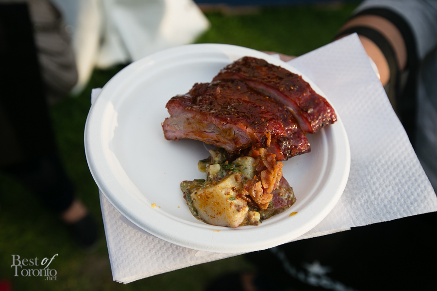 - Barque Smokehouse – Barque Rack O’ Bama: Baby Back Ribs (rubbed, smoked, basted, basted…). Served with a potato, corn, and candied smoked bacon salad and finished with pickled vegetable. | Photo: Nick Lee