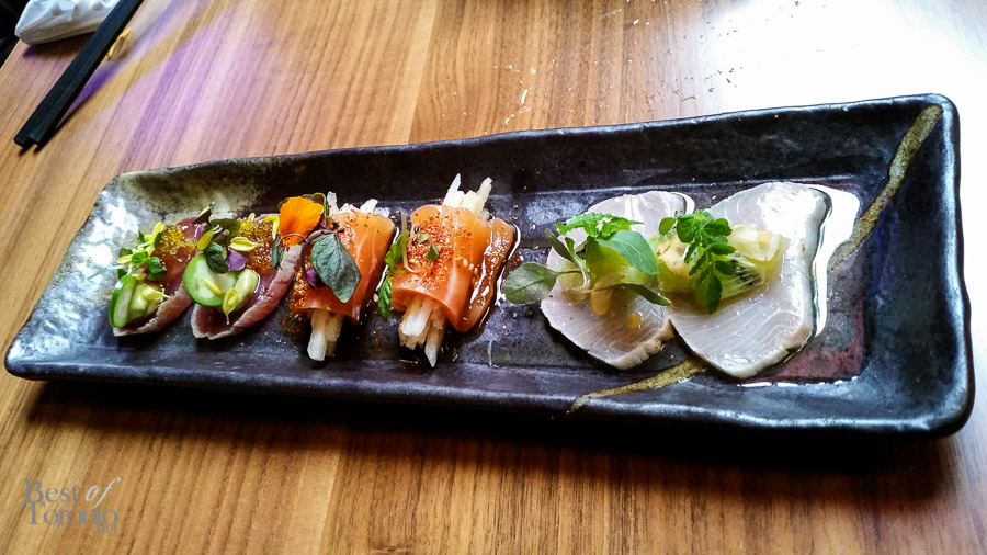 - A delicious sashimi platter including Tuna Tataki served with Tosazu Jelly