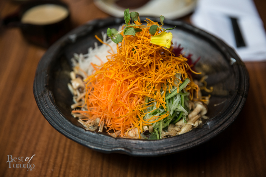 Kinoko salad soba noodle, mushroom, ponzu dressing. An array of crispy textures mixed with the soba noodles.