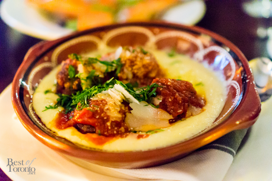 Following these appetizers came the more substantial dishes. These included some of Waxman’s signatures – jw chicken & salsa verde, and jw potatoes. The chicken was flavourful, with the salsa verde and the seasoning working together harmoniously. Other mains included the sea asparagus on striploin, the pan seared sockeye salmon dressed with olive oil, and juicy meatballs on a bed of creamy polenta – my favourite main of the night. Other sides included succotash, and perfectly crisped onion rings.