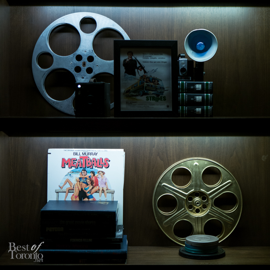 Reitman brings the two-storey space to life. The main floor is decorated with lush earth tones, combined with rich textures in the drapery and upholstery. The digital walls are stunning features. They are comprised of 55″ UHD screens that form arched windows. On these displays play footage shot by Reitman himself from his home in Montecito, California. The second floor offers more dining space, and along the walls are shelves that house memorabilia from Reitman’s movies. Also on the second floor is Montecito’s lounge area, where you’ll find an impressive display of wines, and even orange trees flown in from California.