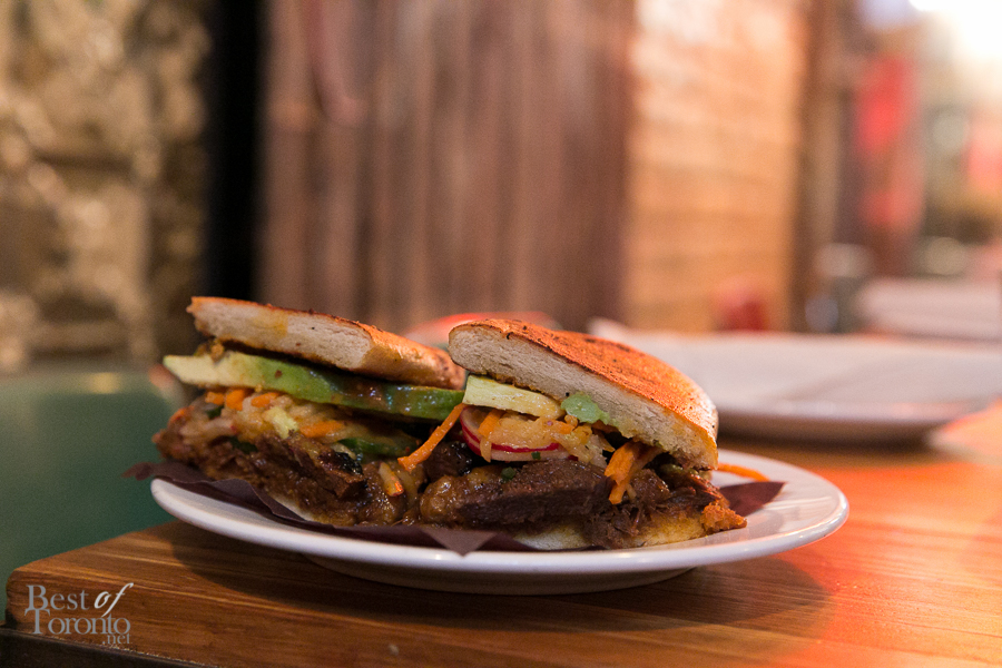 I like sandwiches but I don’t love sandwiches. Yet I absolutely loved the Torta Coreana with grilled kalbi beef and braised short rib, avocado, house kimchi, pickled pear and escabeche. It packs an explosion of juicy flavours and an array of textures. This is a great example of the Korean-Mexican fusion that you must try.