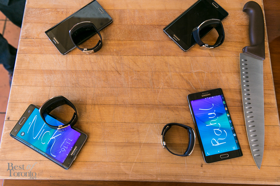 For something different, I was part of an interesting and intimate cooking meets wearable tech lunch event hosted by Samsung Canada on February 5, 2015. While we got briefed on the culinary session with Campagnolo’s owner, Chef Craig Harding, we tried the soon to be released, duo Samsung Galaxy Note Edge smartphone and also the Samsung Gear S wristband.