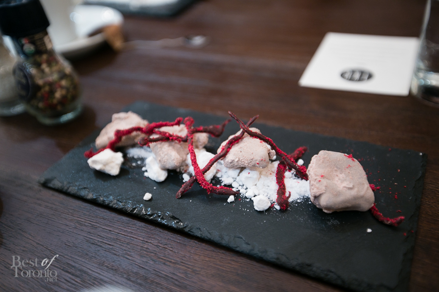 Molecular gastronomy chef extraordinaire, John Placko, hosted an intimate pop-up 4-course dinner to celebrate the launch of the new culinary arts venue called The Kitchen Canada. The lucky few friends, industry and food bloggers got to enjoy the evening by starting off with cocktails and hors d’oeuvres in the unique style that is John Placko.