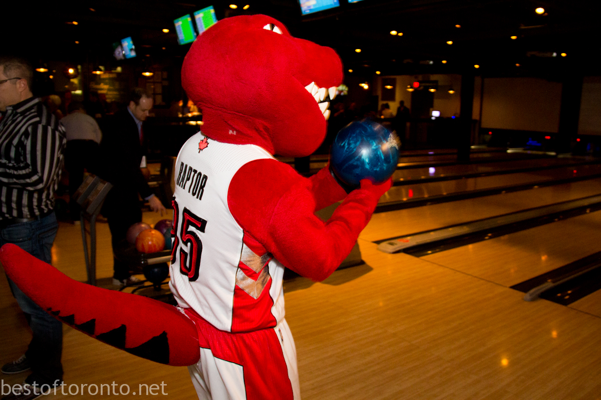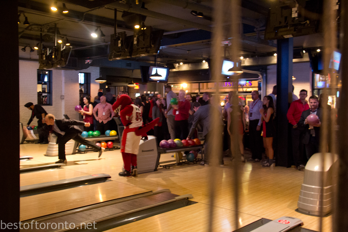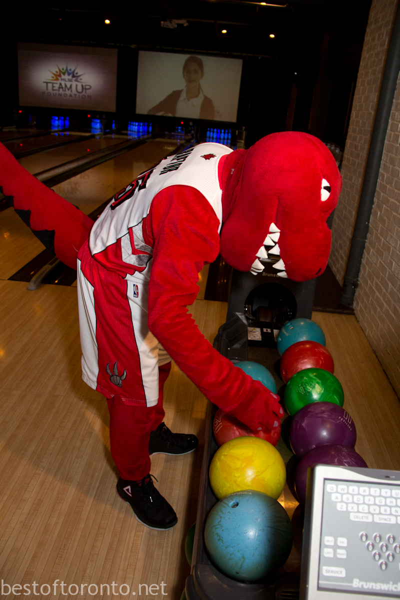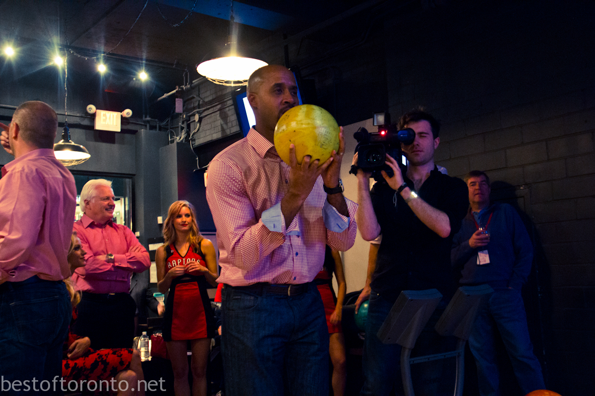 It was a packed evening on both floors of The Ballroom Bowl as the Toronto Raptors coaches, players, media got together with fans on a Sunday night to bowl and play some ping pong to support the MLSE Team Up Foundation’s basketball court revitalization at the Scarborough YMCA. The MLSE Team Up Foundation has invested $160,000 towards the removal and replacement of competition class flooring, installation of backboards, nets and rims as well as new sports lines.
