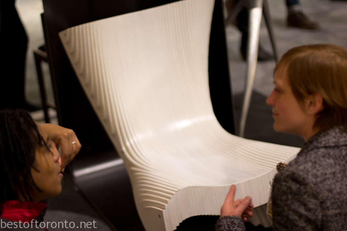The Interior Design Show kicked off their 15th annual show with an impressively large opening party taking over the entire Metro Convention Centre’s North Building. Food stations, drink and cocktail booths were scattered throughout the exhibition floor, providing an exclusive and fun way to explore the show. Artists, designers, media and interior design lovers had the opportunity to bid on 19 different Blu Dot Real Good Chairs proceeds going to the ONEXONE children’s charity. Each chair featured a unique digital design by a designer, artist, fashion designer or illustrator. Last year the IDS chair auction raised over $30,000 benefitting ONEXONE.