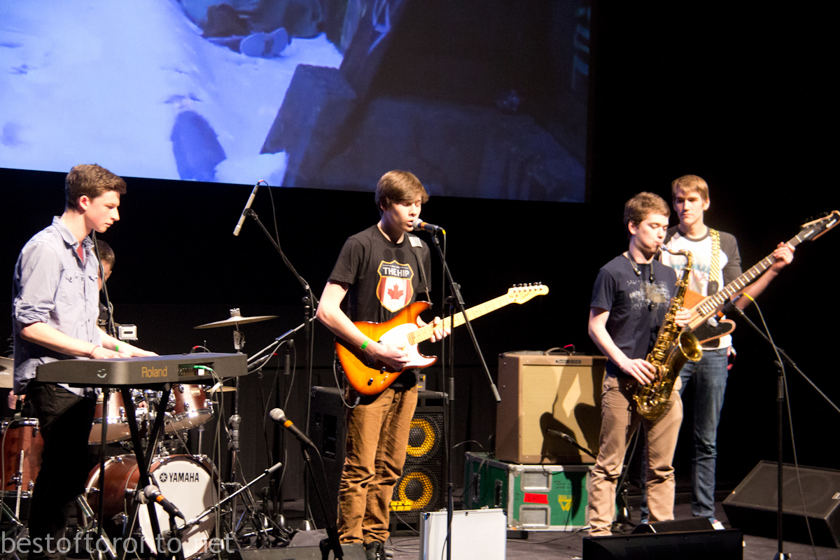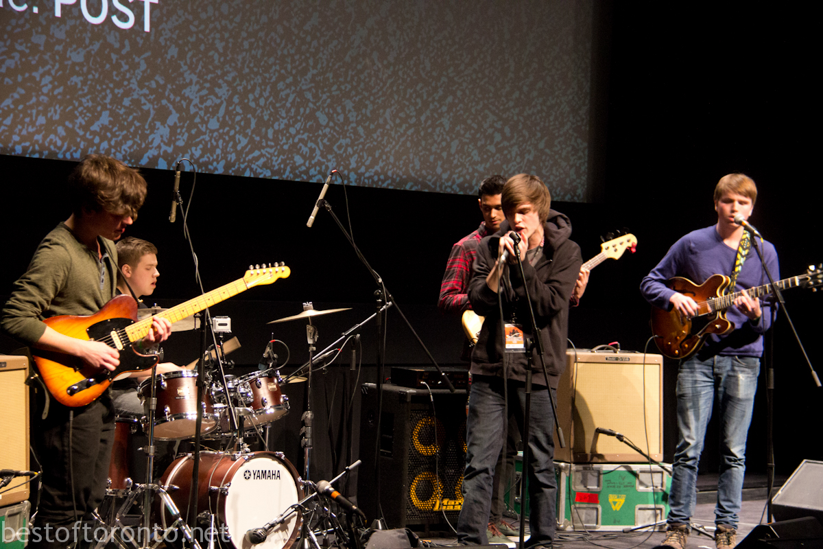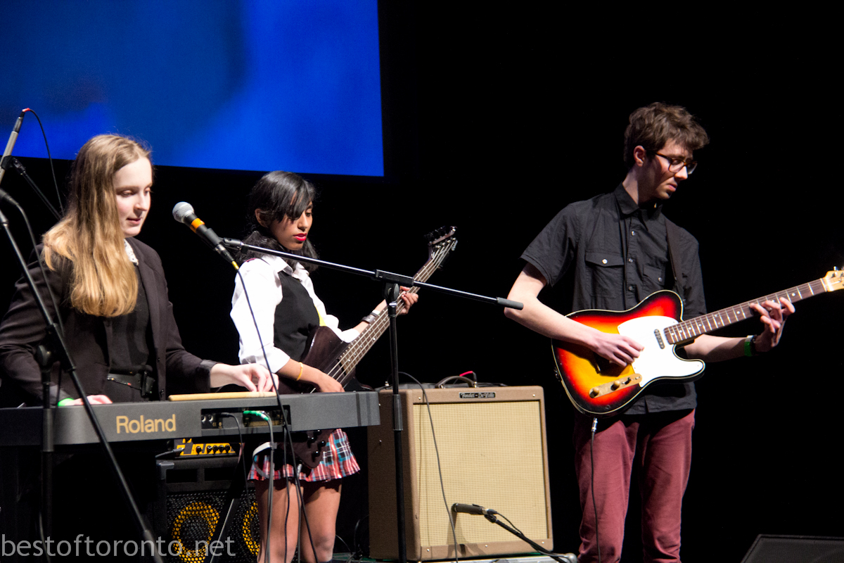 TIFF Next Wave Film Festival is created by young movie lovers for young movie lovers. For the 2nd annual TIFF Next Wave held from Feb 15-17, Battle of the Scores kicked off the opening night festivities featuring 6 high school bands across the city curated by the Next Wave committee at TIFF Bell Lightbox. Each of the bands performed their own unique scores to an original short film created this year by young, emerging filmmaker Ben Roberts. The winner was determined by a panel of professional judges from Toronto’s music and film community including film composer Adrian Ellis and director, actor, choreographer Corey Bowles. There was also an additional prize based on the audience’s votes via texting short codes. The evening was hosted by Sam Sutherland, author of Perfect Youth: The Birth of Canadian Punk and segment producer at MTV News.