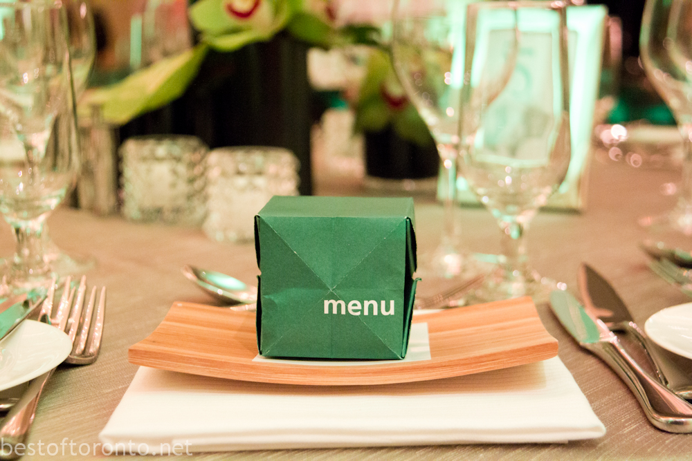 The Gala dinner’s menu folded into a cube, demonstrating Chinese “zhezhi”