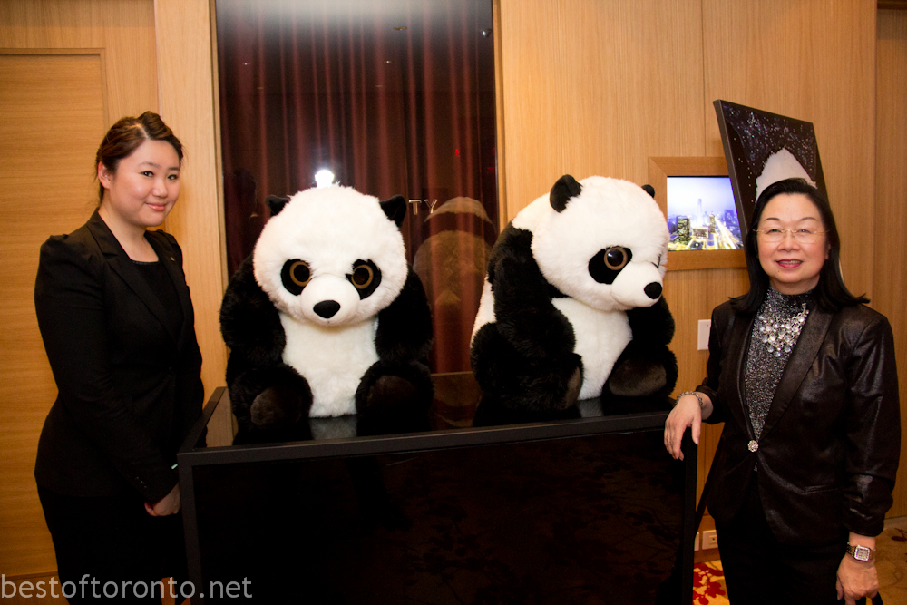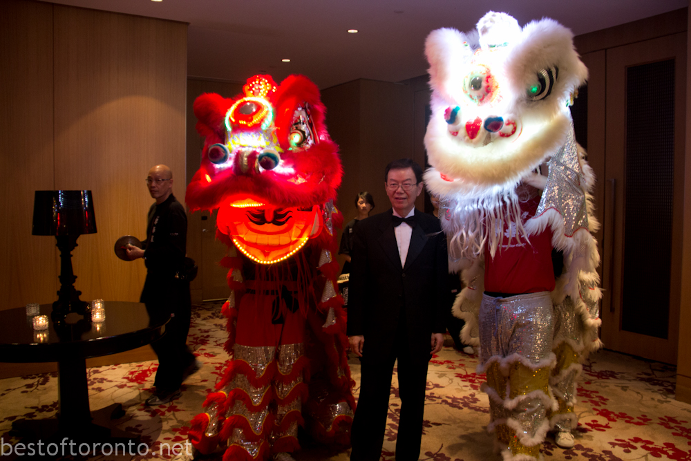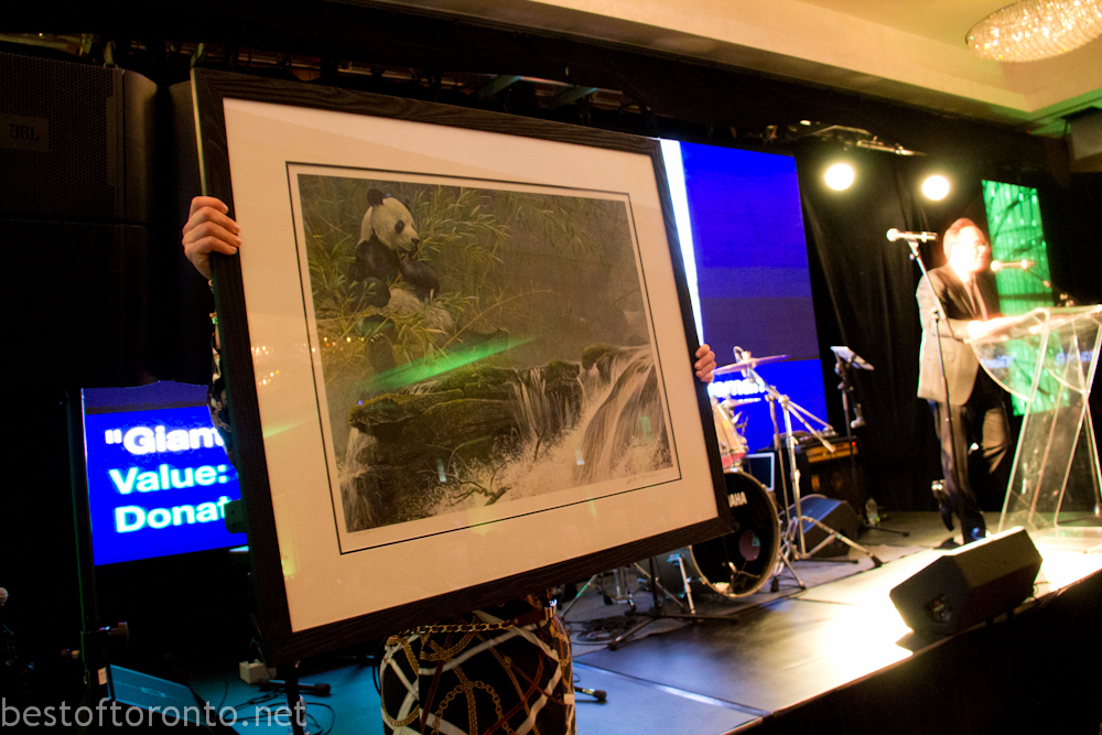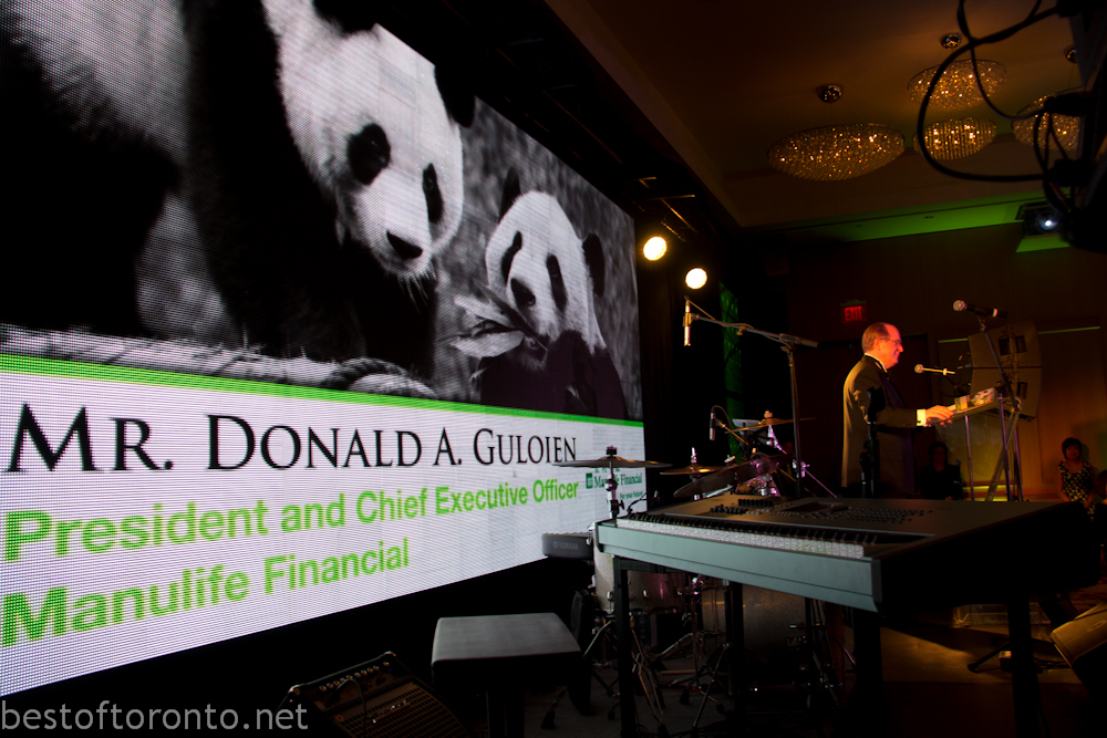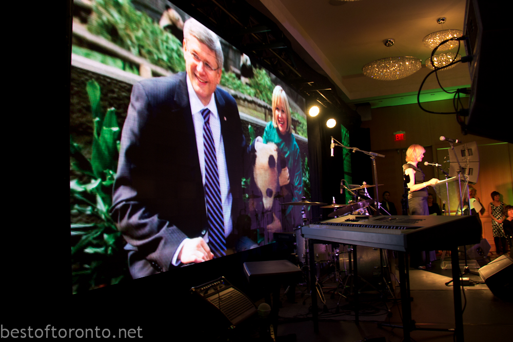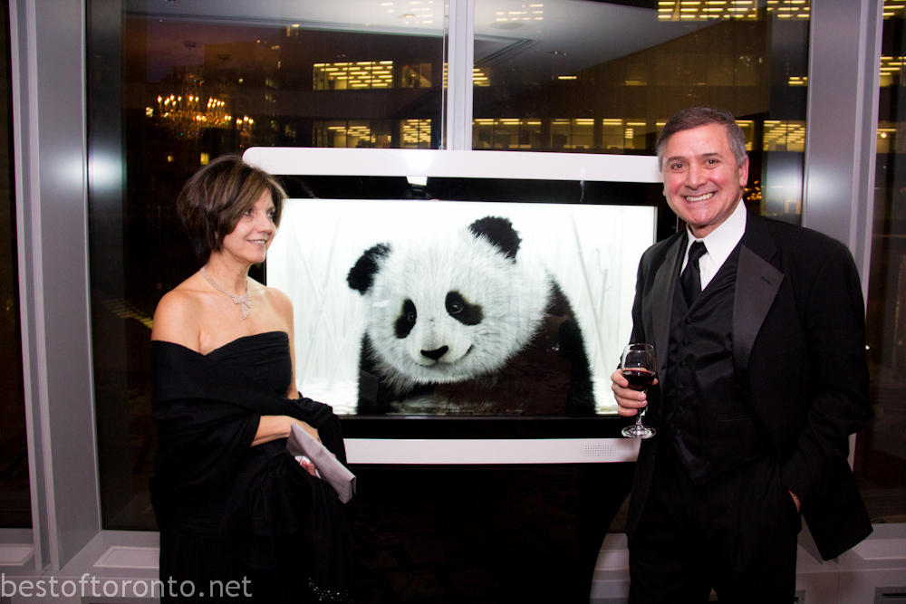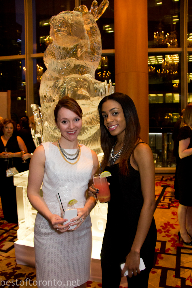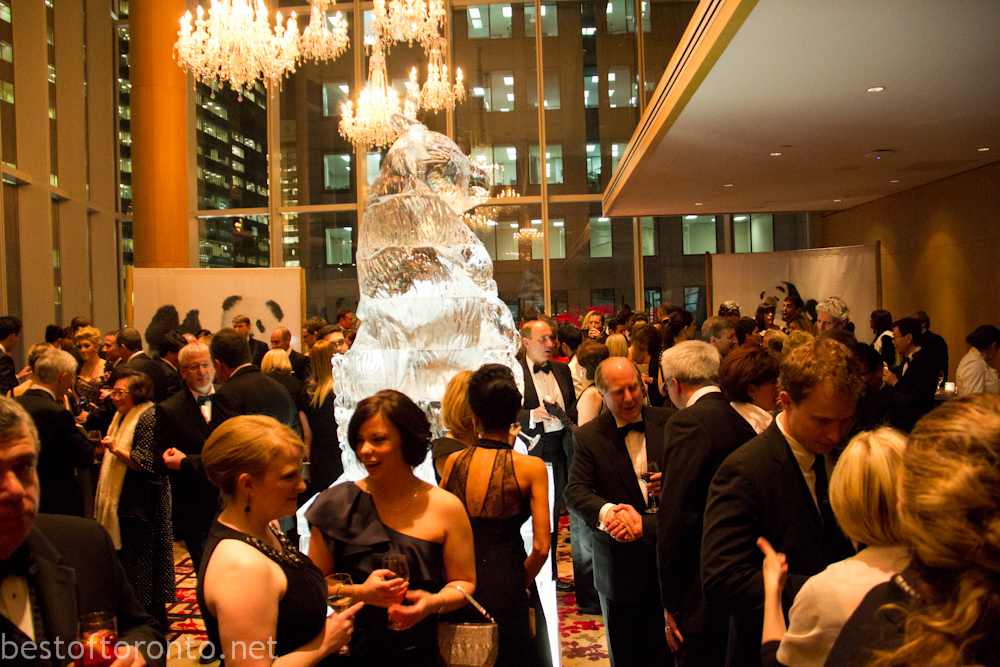 On February 28th, there was an intimately small 250 person fundraising gala in support of the Toronto Zoo’s at the Shangri-La Hotel with honourary chair, Laureen Harper, wife to the Prime Minister of Canada’s, Stephen Harper. The evening started with a reception with an impressively tall, gigantic ice sculpture branded with the Toronto Zoo logo.