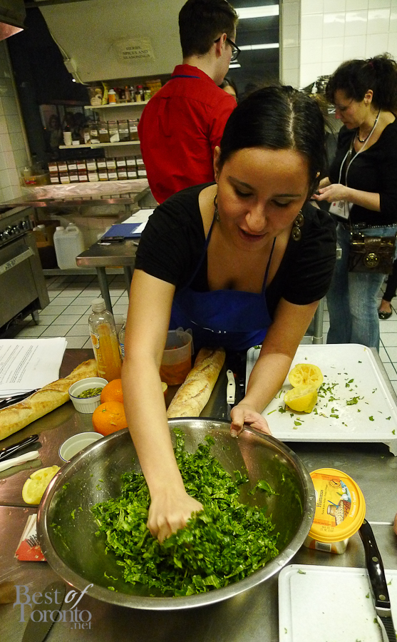 The main event of the evening included cooking a healthy dinner along with simple knife lessons from Cutco. Everyone was grouped into small teams and taken into the kitchen.