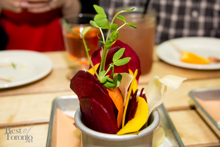 - Fresh Veggie Chips including colored beets, heirloom carrots, and radish
