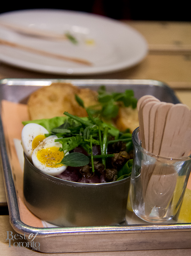“Can o’ Tuna” Line Caught Ahi Tartare, Quail Egg, Herb Salad, Toast