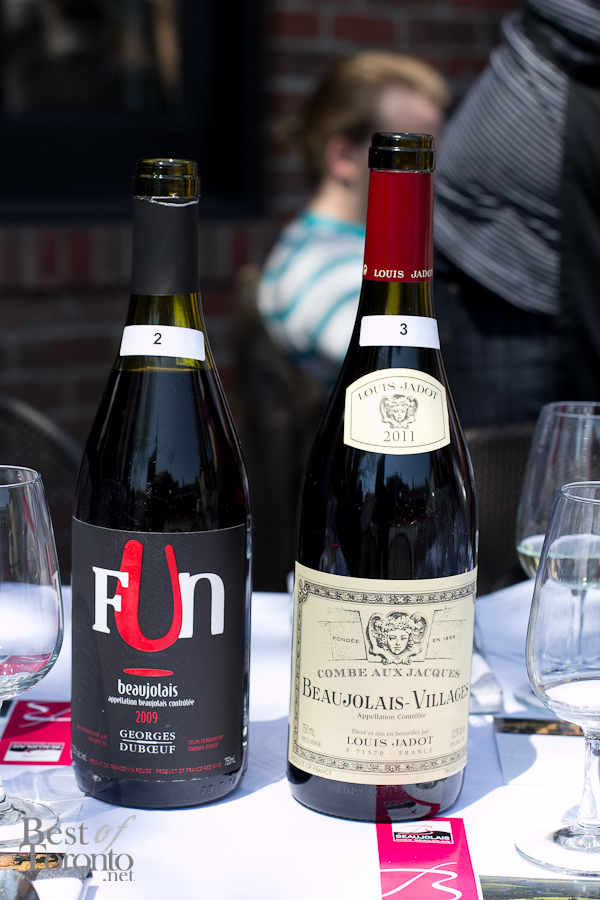 Wines: Georges Dubceuf FUN Beaujolais (#1), 2009 and Louis Jadot (#2), Beaujolais-Villages Commbe aux Jacques, 2011(#3).