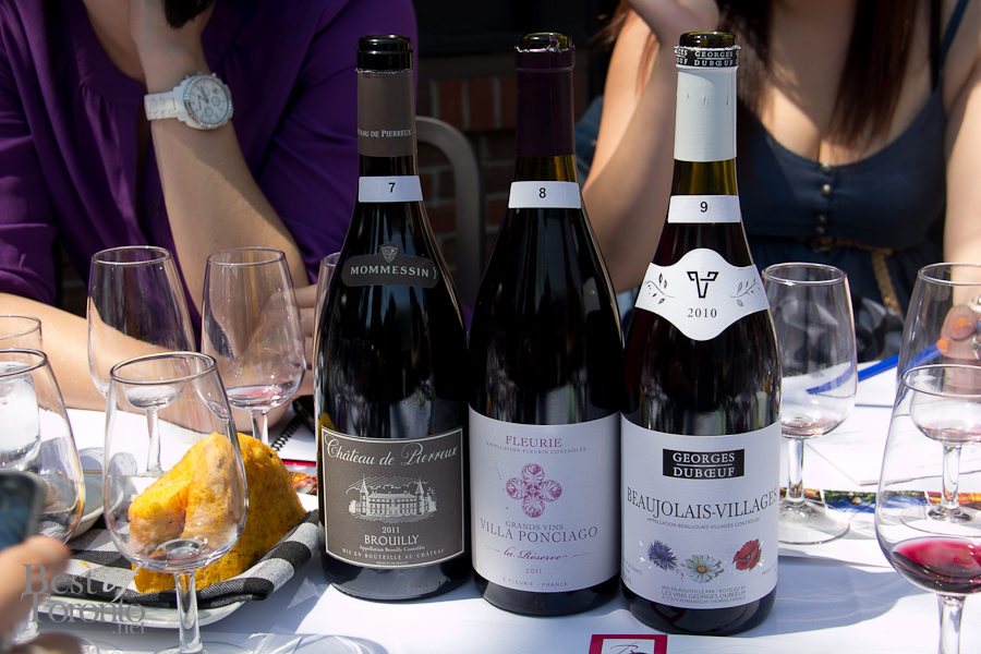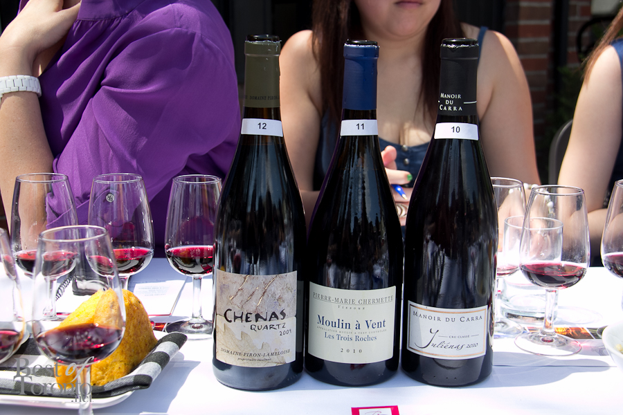 Wines: Château de Pierreux, Brouilly, 2011 (#7), Villa Ponciago, Fleurie La Réserve, 2011 (#8), Georges Duboeuf, Beaujolais-Villages, 2010 (#9)
