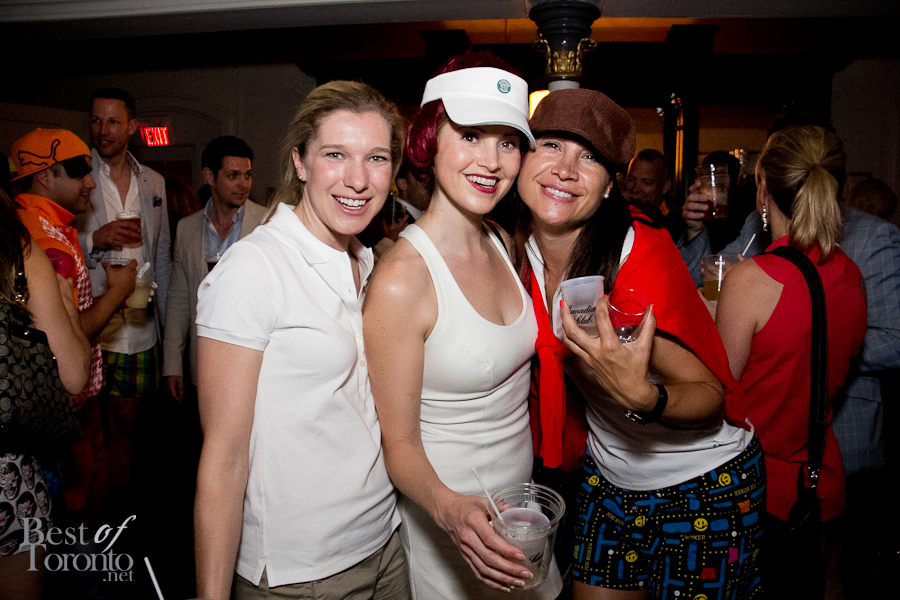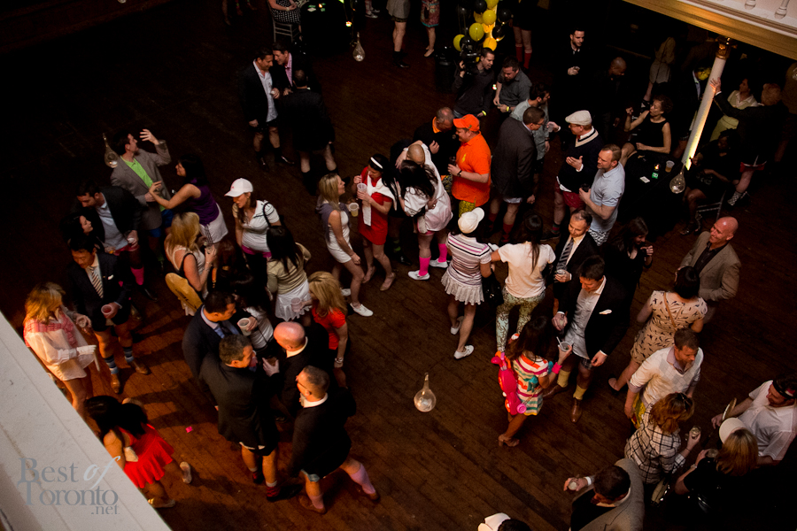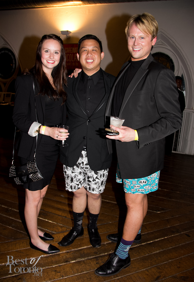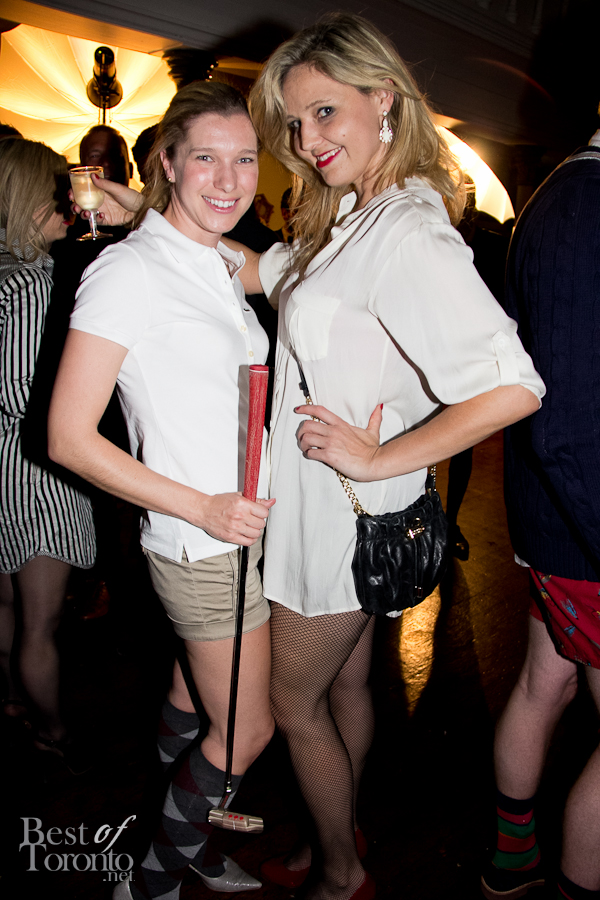 This year’s 4th annual Pants off Party had the theme of Golf & Country Club with people looking stylish in their country club clothes and no pants. It took some adjusting to walk into the Berkeley Church where you’re the only one wearing pants at a pants-off party. So I found the coat check where they politely check in your pants. This is when supermodel Stacey McKenzie said hi to me. So I awkwardly took my pants off in front of her and handed them in for check-in (no looks of disgust at all!) and went on my way. Bright and colourful boxers and snazzy, argyle socks were available for sale at coat check. Such a great idea.