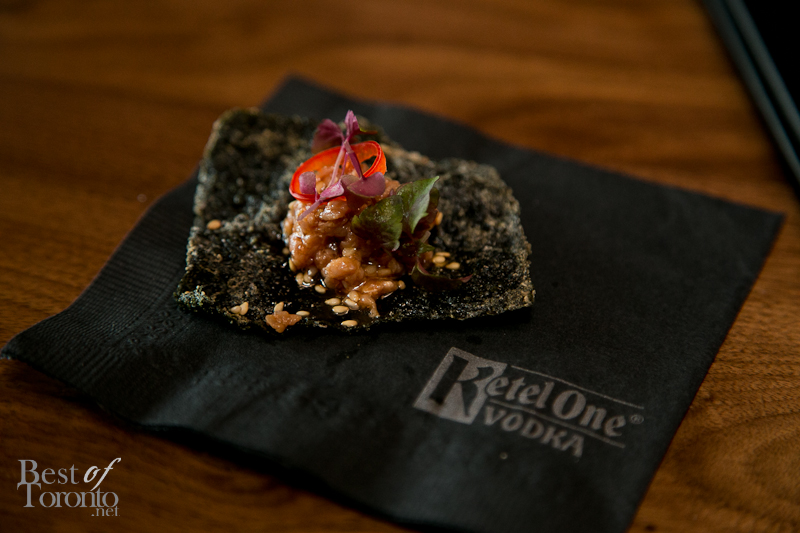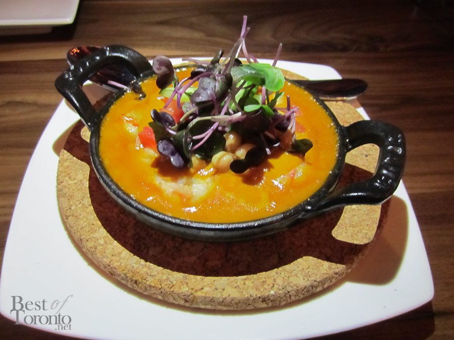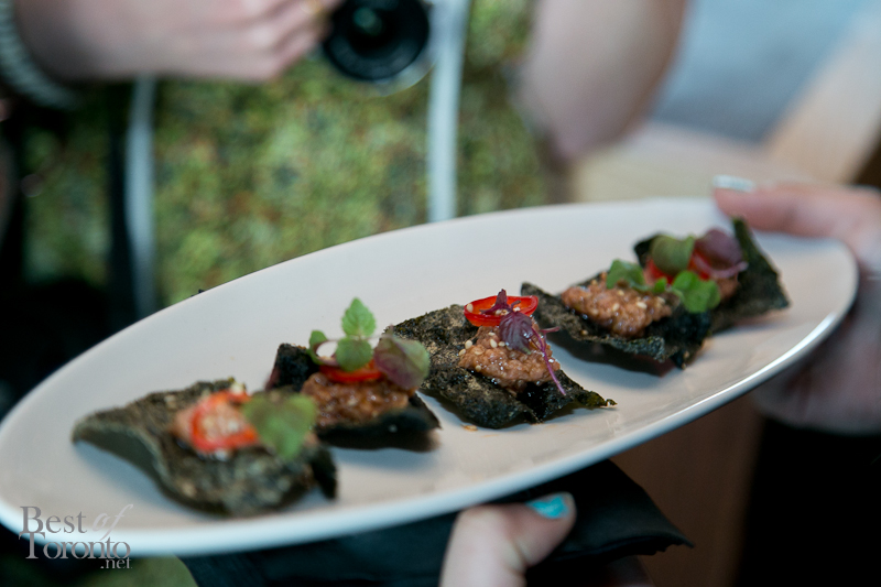 We got to preview the exciting dining experience at the brand new, highly-anticipated Origin North restaurant fitting in nicely at the premium boutique shopping mall, Bayview Village. This is the 3rd Origin location by internationally acclaimed chef and owner, Claudio Aprile: the first being at King and St James and the second being at Liberty Village. So those of you who are Origin fans in the midtown area can rejoice! While this new location at Bayview Village did not have their liquor license quite just at the time-of-dining, we enjoyed sipping our non-alcoholic Origin Crush cocktails while waiting to see what was in store for us.