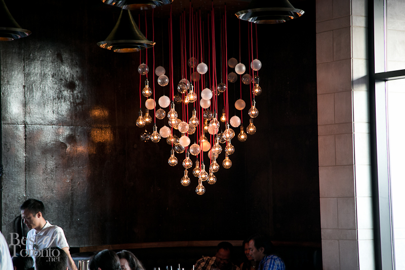 The restaurant is 12,000 square feet and has over 300 seats. Origin North is nicely decorated, sophisticated and warm: its kitchen is open concept, allowing guests to observe as the food is being prepared; the golden glow of the Edison light bulbs creating a nice evening mood.