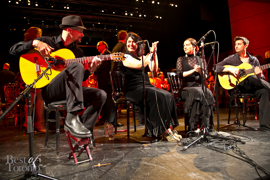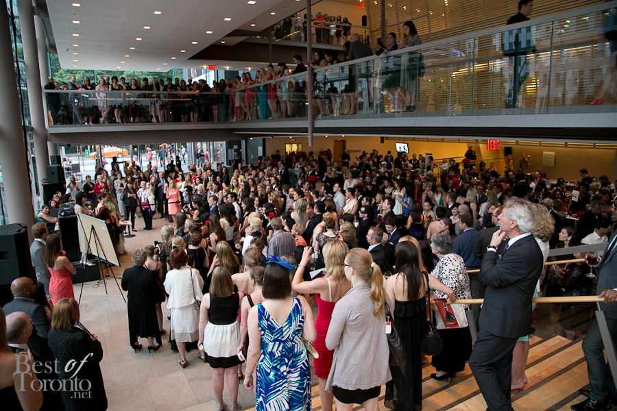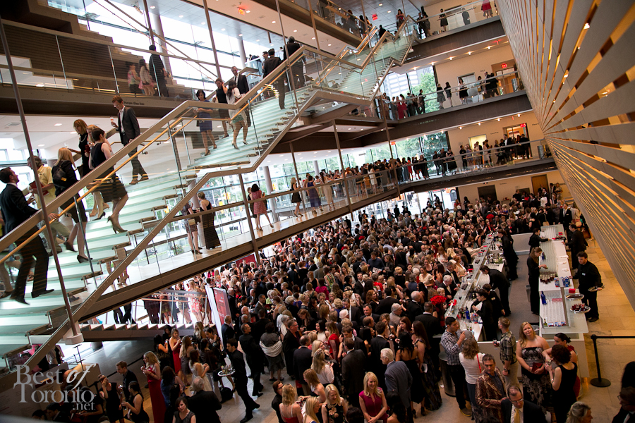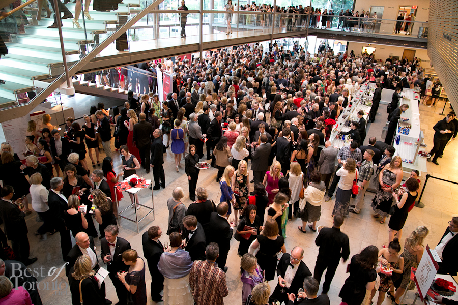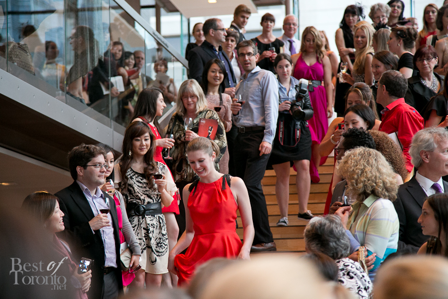 As the curtains were drawn, the crowd filtered out into the lobby, glass staircases and suspended bridges of the Four Seasons Centre for the Performing Arts for the gala cocktail reception. We couldn’t ask for a better venue to sip prosecco and wine while enjoying all the fashion and deliberating about which was our favorite performance. We settled on “Carmen” (hey, it’s subjective after all). Carmen is the theme of the gala, anyway, with a sangria bar and Spanish-inspired tapas.