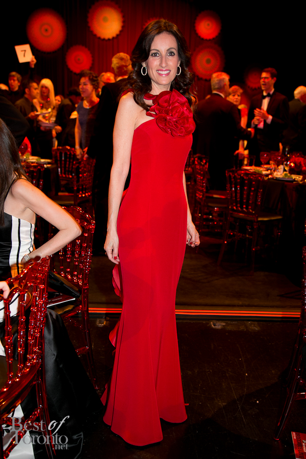 - Shoshanah Kuper in red, descending the staircase to accept her award as FASHION Magazine’s Best Dressed Winner for the evening