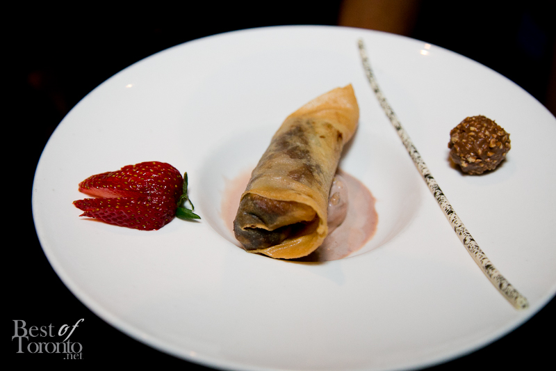 - Chocolate banana spring rolls with ferrero rocher gelato