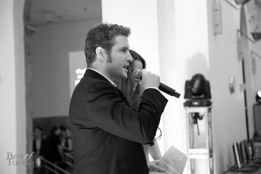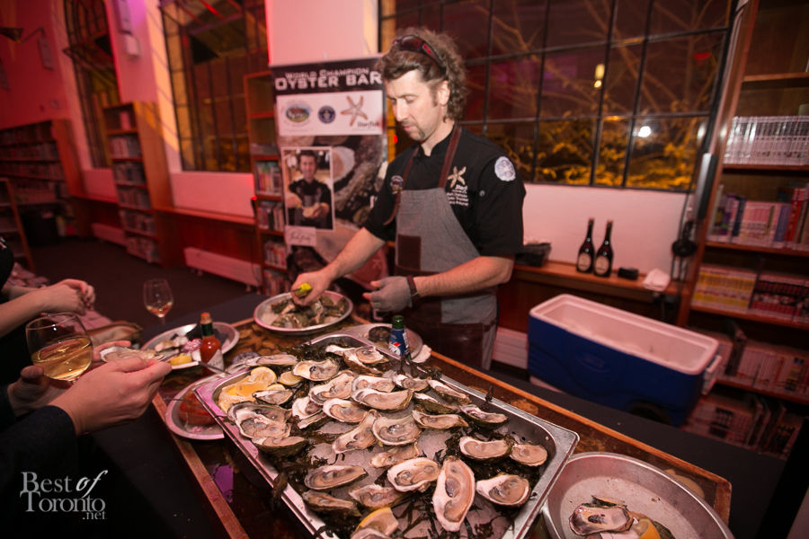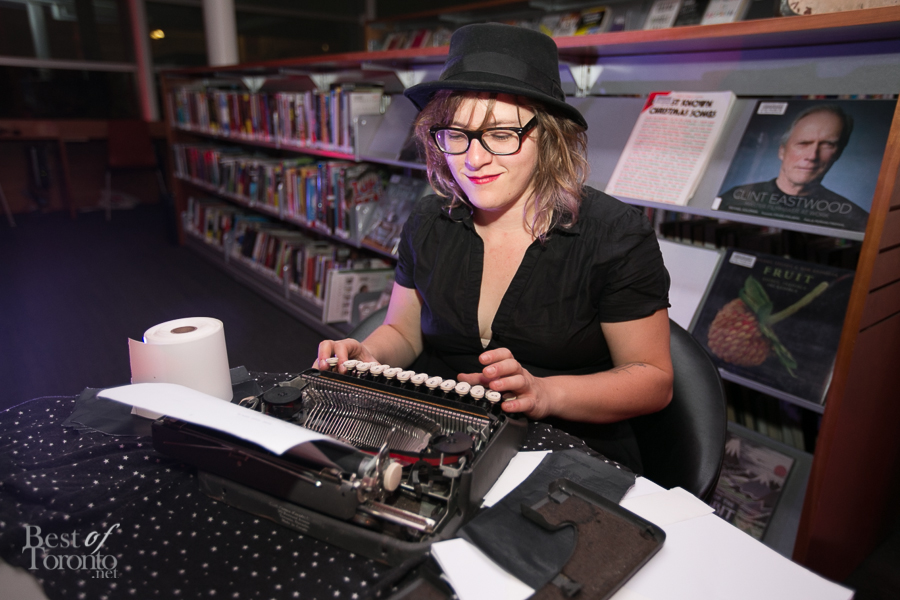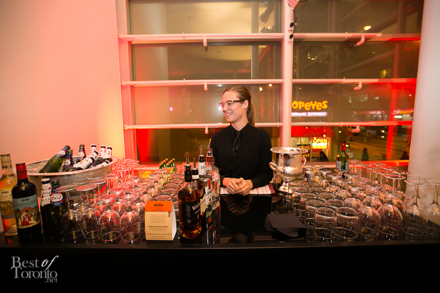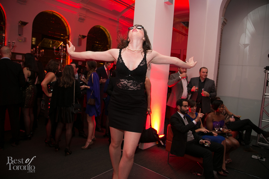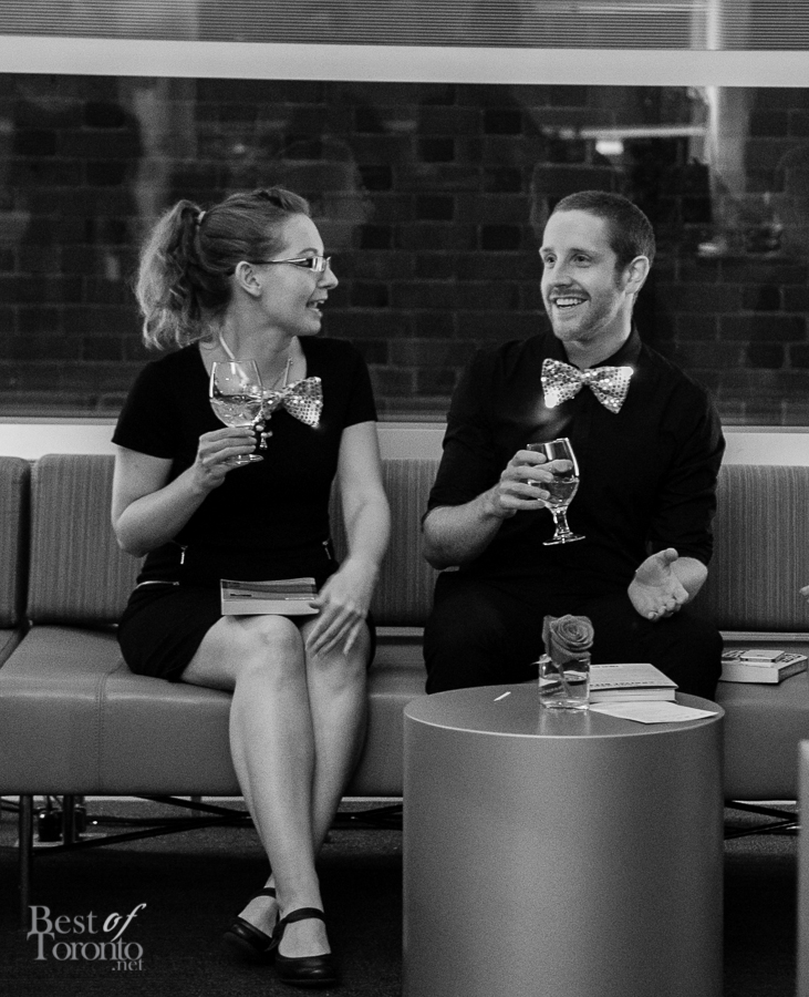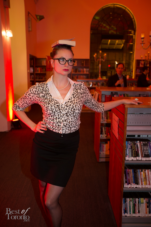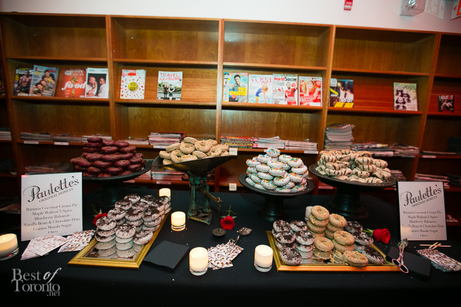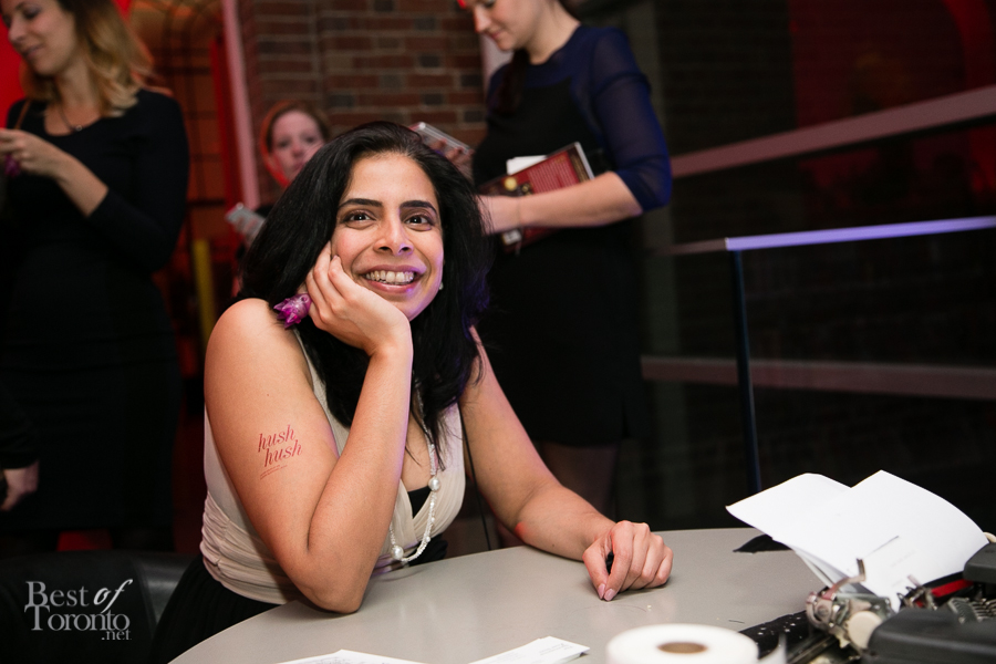 I really enjoyed all the careful attention to details of this well put-together event thrown by New Collection, The Toronto Public Library Foundation’s young patrons group. Even though it was the inaugural event, you could tell this was very well thought out. Everything was top notch: the decor, the entertainment by DJ Fathom and DJ GeeWizz, spoken word poet, magician Jonathan Pollock, and “Hush Hush” tattoos. It was great that there was enough drink and food stations (delectable oysters, gourmet donuts) to make the party more than a typical crowded-perpetually-standing-in-line party. Rather it was pleasant, spacious and enjoyable on all fronts. Even TV reporters and police officers came by with big smiles for this unique occasion.