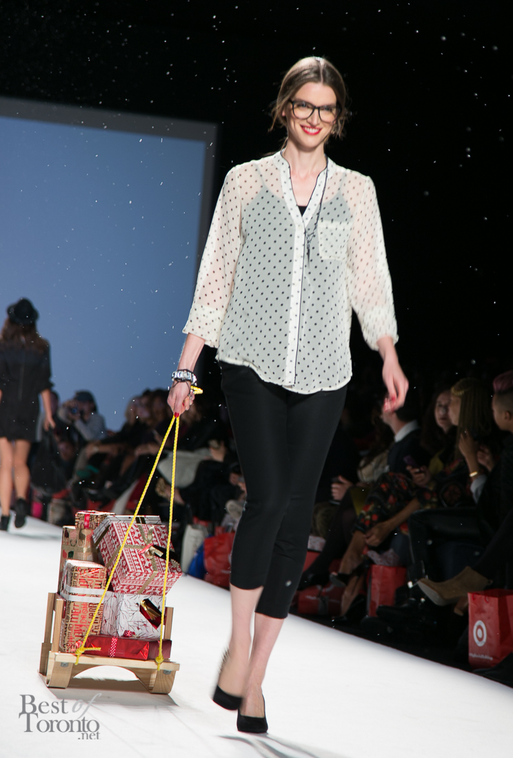 To celebrate the holiday season, here’s a look at some Christmas and holiday-themed fashion shows including a look back at the family-friendly retailer, Target, on the runway at Toronto’s World MasterCard Fashion Week Spring/Summer 2014 at David Pecaut Square.