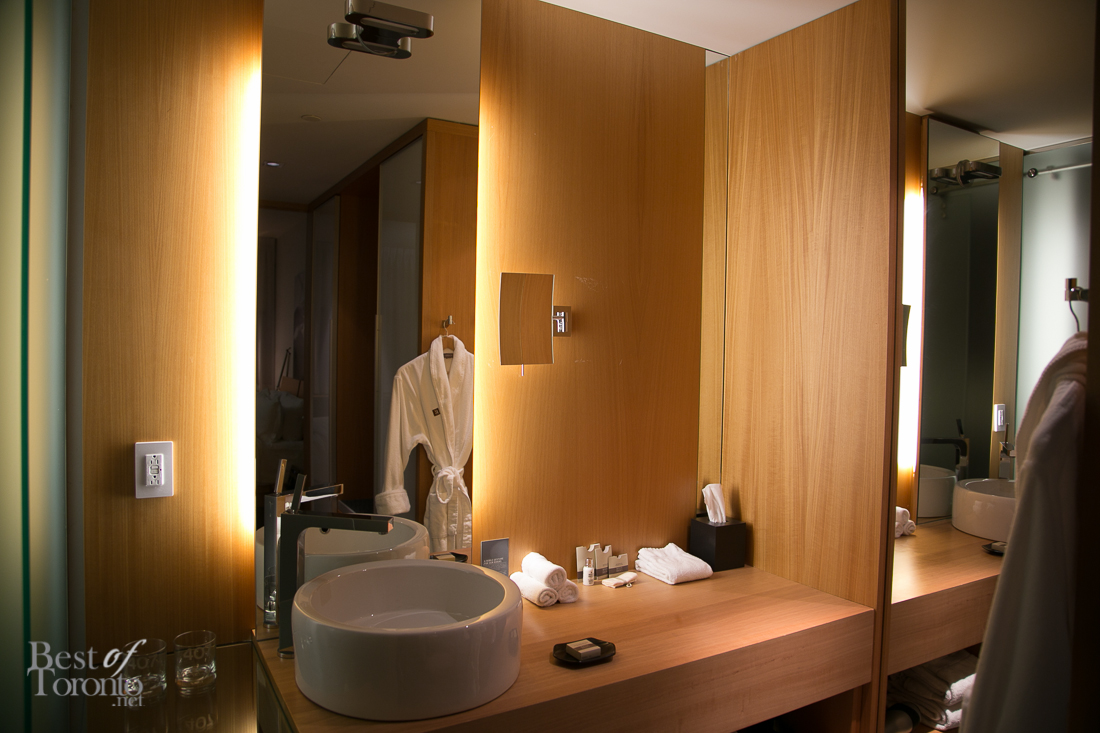 Some of the suites and meeting rooms have a great view of Maple Leaf Square and even large terraces to enjoy the lively vibe right in front of the Air Canada Centre. Cheeky, sports-themed names for the boardrooms included the Offensive Zone, Defensive Zone and the Penalty Box. In the suites it was interesting to see the glass showers with views from the bedroom for exhibitionists and photographs hanging above the bed featuring Leafs or Raptors players. Even the hallways have nice touches such as fresh apples and hot tea free for the taking. It’s all about the details.
