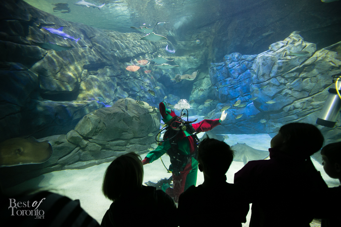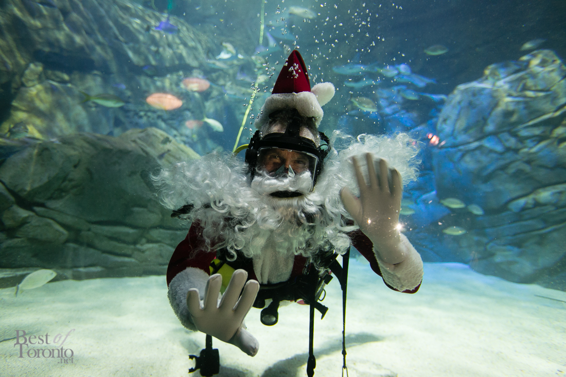 Today Santa Claus or rather “Scuba Claus” and his merry elves made their inaugural dive at Ripley’s Aquarium of Canada in Ray Bay to feed the sting rays, giving them treats of mackerel.
