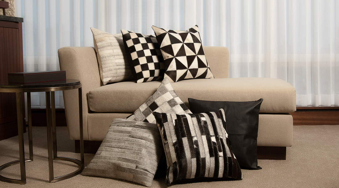 The hand-crafted pillows add a touch of elegance with unique designs including exotic woven patterns, patchwork, solids, geometric and animal print.