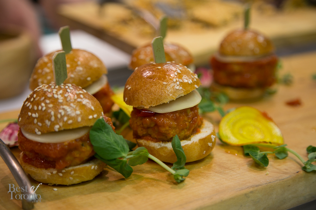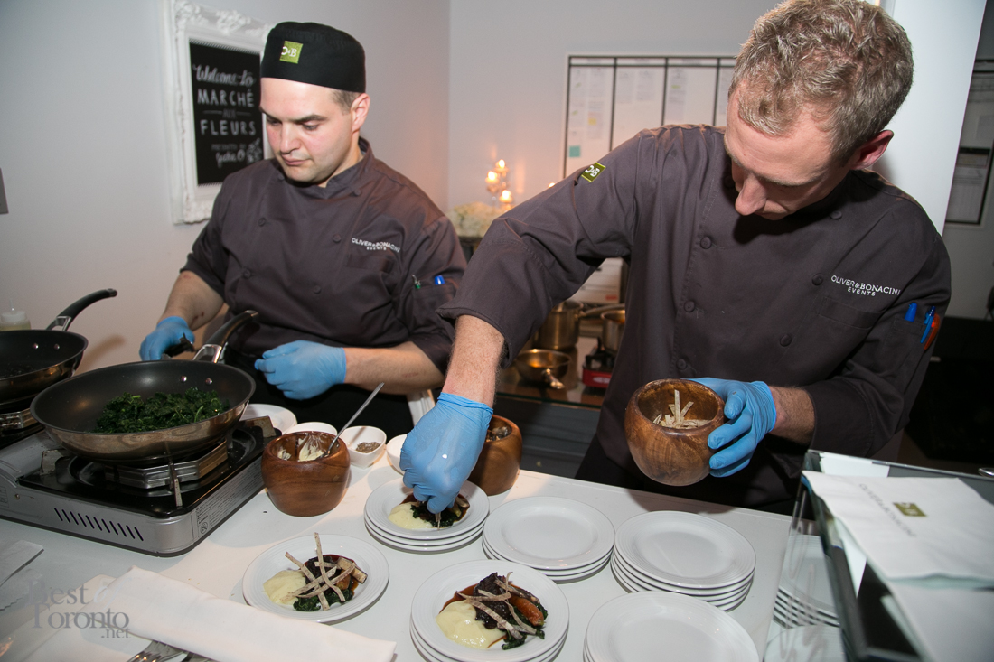 I was lucky to attend the intimate launch of this new offering which took place at the headquarters of floral decor specialists, Jackie O, in Liberty Village. The friendly staff at O&B Caters showcased a variety of exceptional dishes including deconstructed poutine, tender short ribs, pear & fennel salad (pictured above) and a build-your-own Caesar station which included toppings such as pepperettes and slices of bacon. I really enjoyed that pear and fennel salad which tasted as good as it looked with textures upon textures of flavour. Everything was top-notch as expected from O&B.