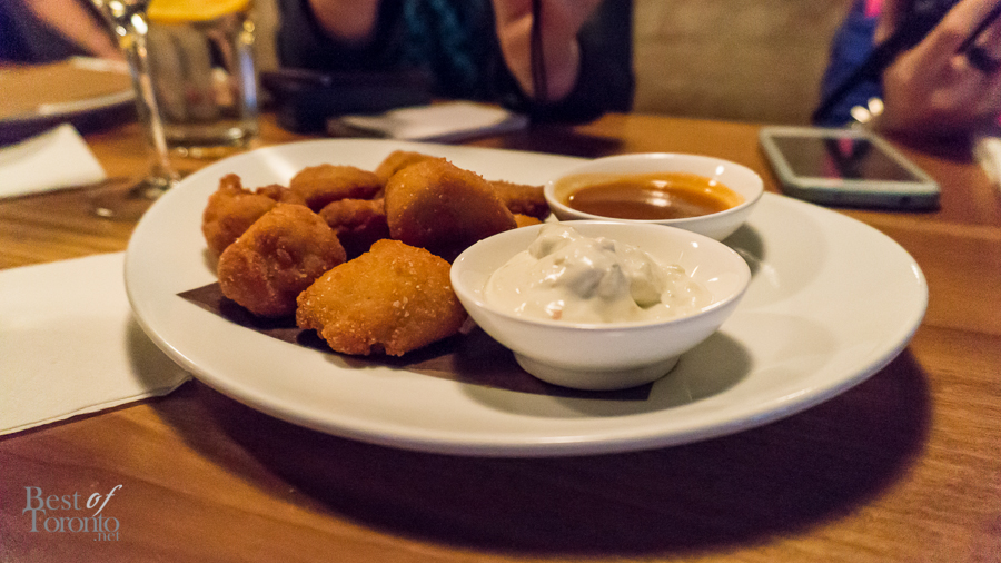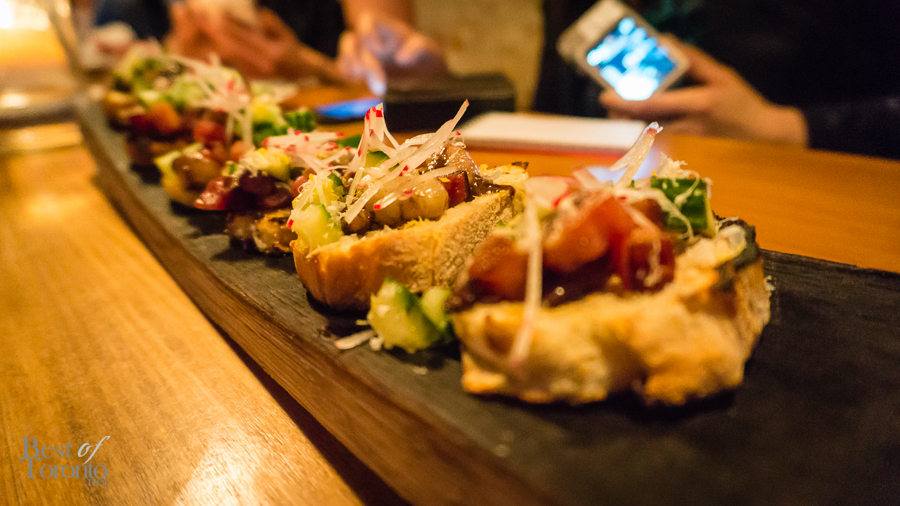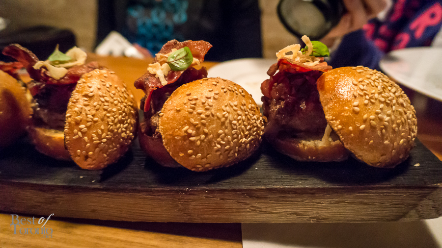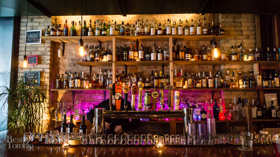 Let’s start with the drinks; this is a pub after all. When you walk into Habits, the first thing you notice is the striking whisky wall, with its over 300 bottles of different whiskys. Fun fact – Habits boasts the third largest whisky collection in Toronto. There’s also a large selection of wines, infused liquors, and beer on tap. An ample selection of drinks? Check.