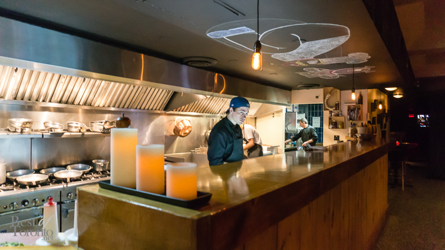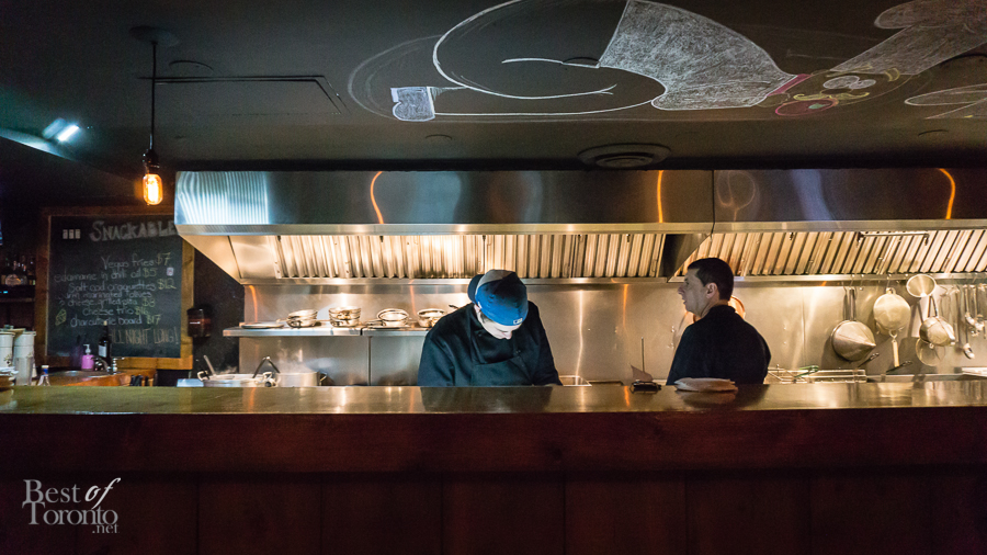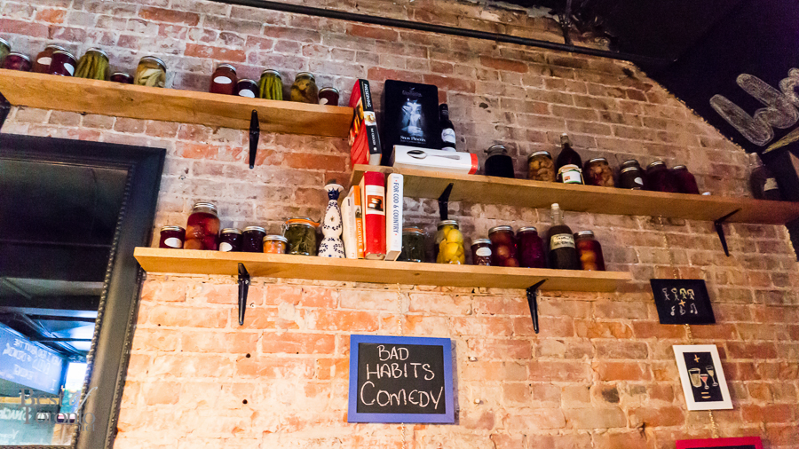 How about the setting? The clean lines, and the glass and steel fixtures, give a modern feel, while the quotes and drawings on blackboards, and the mason jars and cookbooks on wooden shelves, tip the scale back to the traditional side. It’s a good mix of contemporary and cozy. On different nights, you’ll find live music or comedy, or various food and drink specials. A place to hangout with your friends often? Check.
