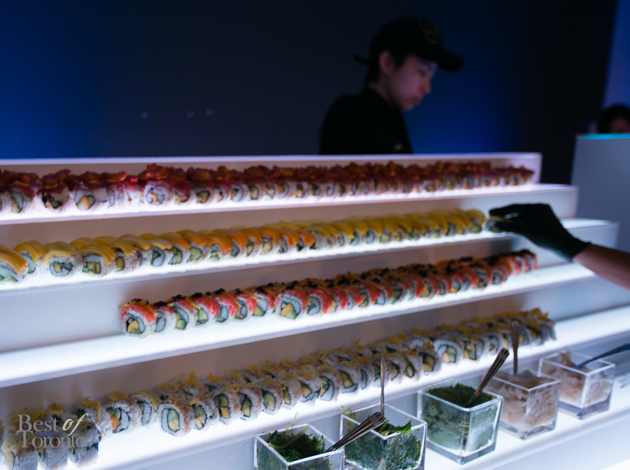 Guests at this exclusive launch were treated to a sushi bar, Rodney’s Oyster’s served on an ice bar, and catering by the Food Dudes. Extra additions included pocket circles with your choice of designs made on the spot by Philip Sparks (Philip Sparks bow ties were at the Cadillac CTS reveal), and a build-your-own perfume booth with Aromachology. There was an impressive selection of premium libations including Cadillac-themed cocktails and champagne (Moët & Chandon Brut).