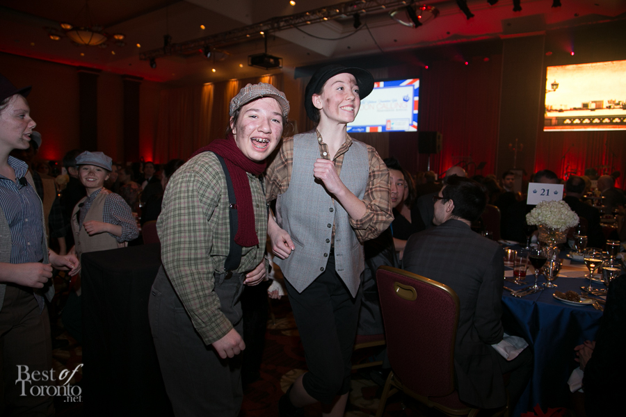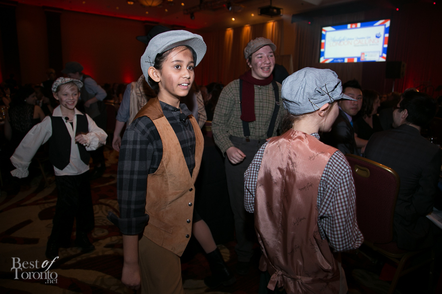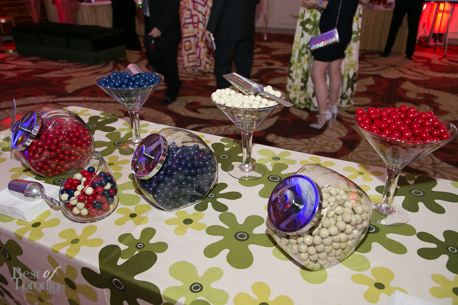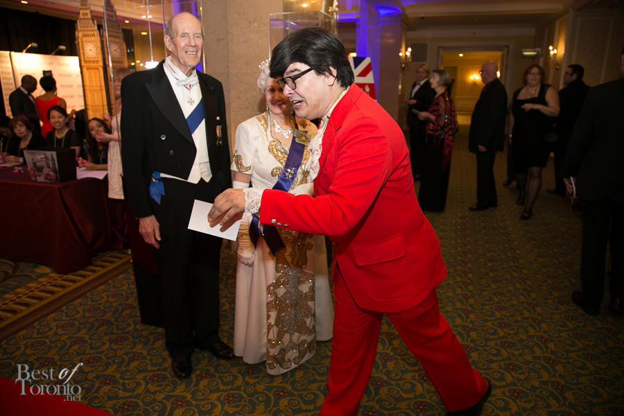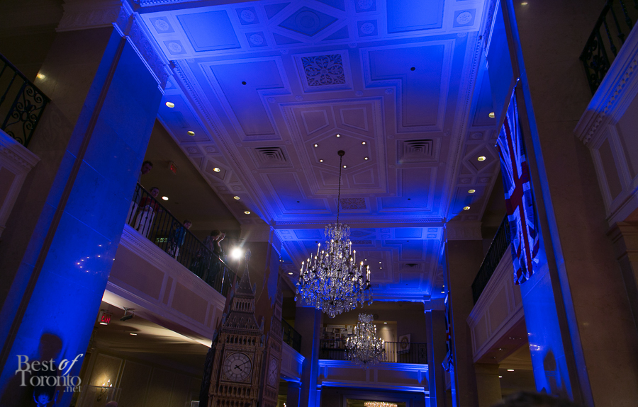 UK-inspired entertainment from the evening included choir boys from the Theatre Dance Company, from the a Toronto-based Spice Girls tribute band called Wannabe rocked on stage with their energetic performance. UK-personalities included The Queen, Palace Guards and a hilarious Austin Powers personality (new radio host, Del Morgado Show) to the backdrop of English decor with Buckingham Palace gates, a recreated Covent Garden Market and a Mini Cooper with the Union Jack flag. Lovely details!