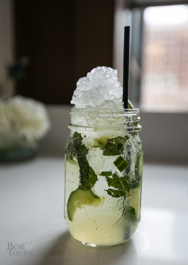 - “Canadian Cooler” with Eristoff Vodka, Lime juice, Simple syrup, Mint leaves, Cucumber slices