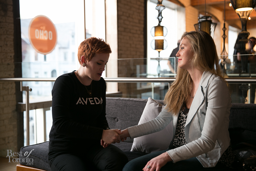 The striking photos included ten of Toronto’s naturally curly-haired tastemakers, styled with sleek manes using the help of Smooth Infusion™ – all shot by Aveda Canada’s CEO, Ray Civello. Beautifully photographed, the black and white series included recognizable faces such as MTV personality Aliya Jasmine Sovani, Bustle Clothing’s Shawn Hewson and wife Ruth Promislow, DJ Diego Armand (who also supplied the music at the event), fashion blogger Gracie Carroll, and photographer Becca Lemire.