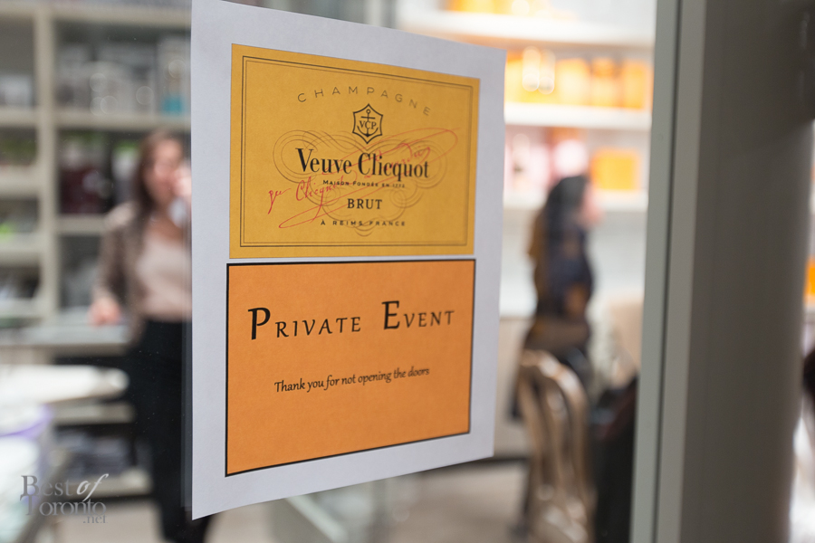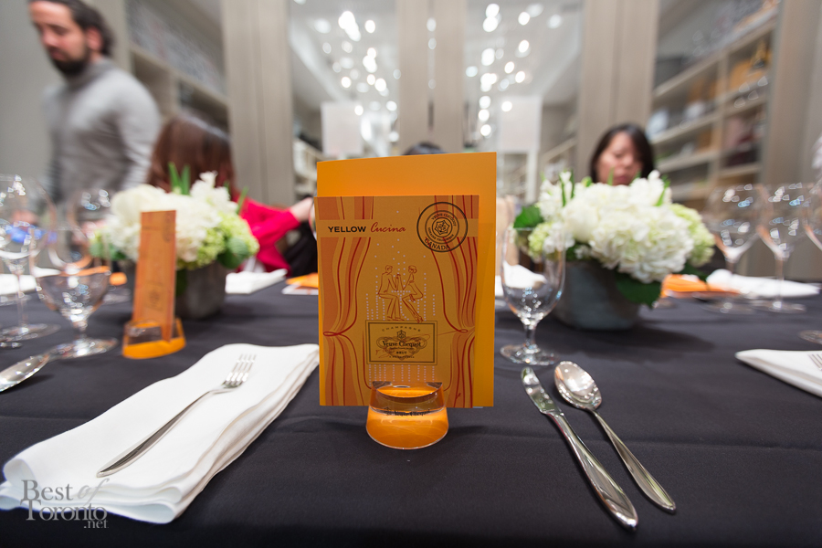 I was lucky to be invited to the intimate preview of Yelloweek entitled “Yellow CUCINA”, an exclusive tasting of 4 varieties of Veuve Clicquot paired with delicious bites by Chef Romain Avril of La Societe. It was an incredible experience in the back of the retail store of Teatro Verde at Bayview Village.