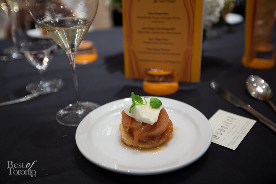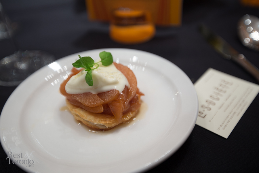 - Caramelized mini pear tatin, granny smith sorbet paired with Veuve Clicquot Demi-Sec