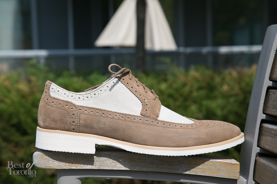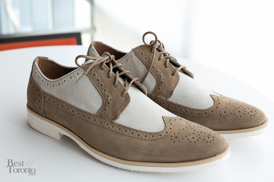 So I chose the sand-coloured Stacy Adams oxfords with brogue details and elongated Euro-look ($105), adding some pizzazz to my own collection of shoes – they’re just something I wouldn’t normally choose and that’s what makes them great.