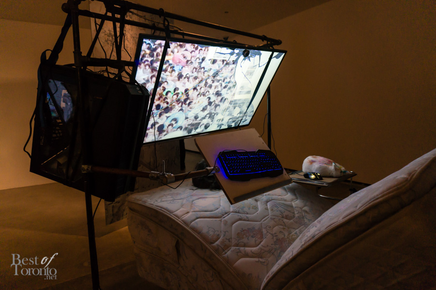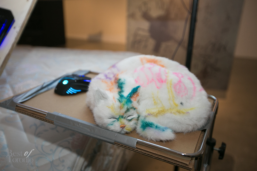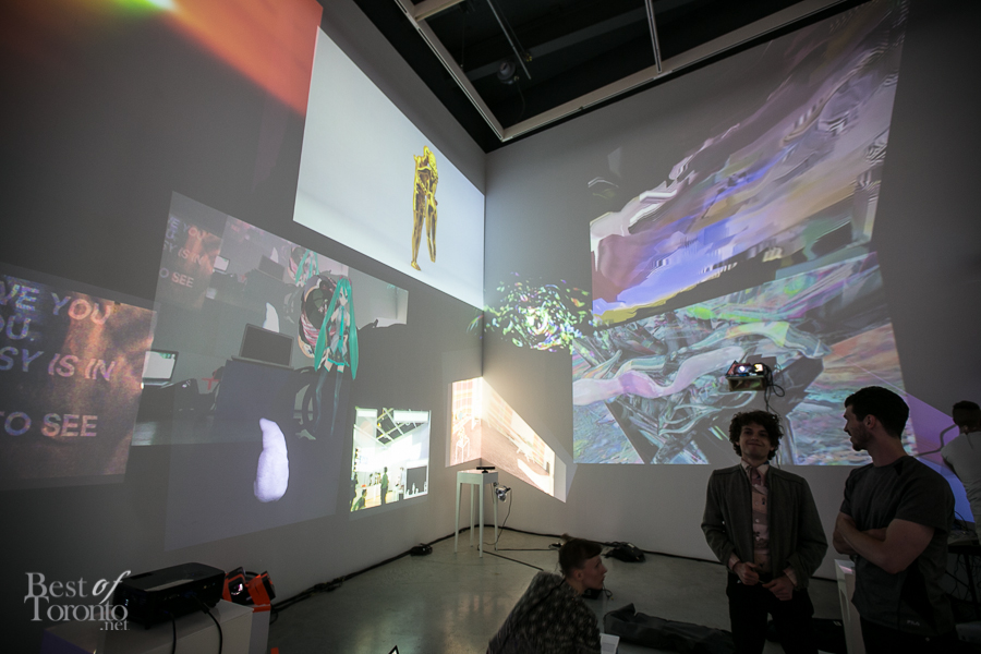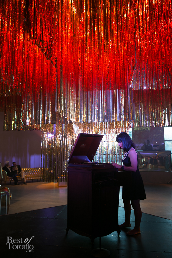 Art was at the forefront of this event of course. There was a private performance of Gramophonica by award-winning English British artist Naomi Kashiwagi, which resonated deeply with Power Ball’s theme. In this performance, Kashiwagi took 78rpm records re-appropriated with electrical tape, and “glitched” them on a wind up gramophone. This produced distortions, amplifications, crackles, and other sounds, reminiscent of today’s hip hop or techno music. There was an area for B.Y.O.B. (Bring Your Own Beamer) – where artists showcased their work via digital projectors. Other participating artists included Christine Davis, Jon Rafman, and Oli Sorenson.