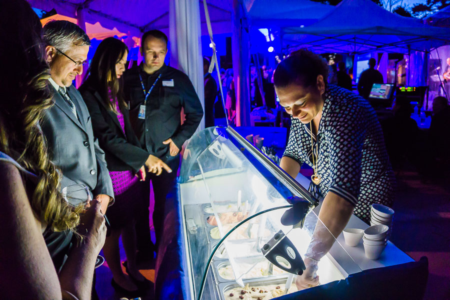 As night fell, hungry guests were able to enjoy an array of gourmet dishes. From Daniel et Daniel’s buttery sous vide strip loin to Dolcini’s delectable dessert gems, the food was both sophisticated and fun. My personal favourite was the maple taffy with cheese from Ninutik SASSeh. This twist on an old Canadian classic, made by pouring maple syrup on snow, was raised to another level by wrapping a cube of savoury cheese inside the sweet gooey taffy. The line was long but worth the wait, even to watch the server prepare this delicacy.