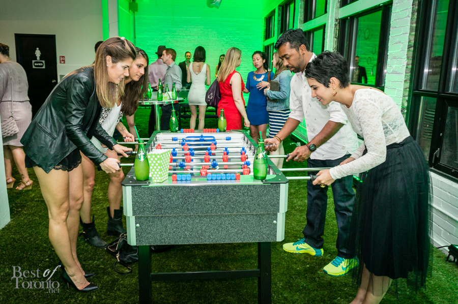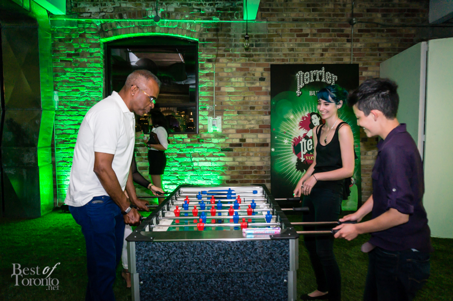 What exactly is an adult playground, you ask? Imagine the times you spent as a kid at an arcade playing classic games like Pac-man, or trying to get the high score on a pinball machine, or competing with friends playing pingpong or football. Imagine all that, except now you’re an adult. And there’s a live DJ spinning. And there’s a bar. And you’re sipping a nice cocktail made with Perrier. It was a definitely a very cool, very adult space, yet evoking memories from your youth. Even the floor was covered in artificial grass, which was a fun touch.