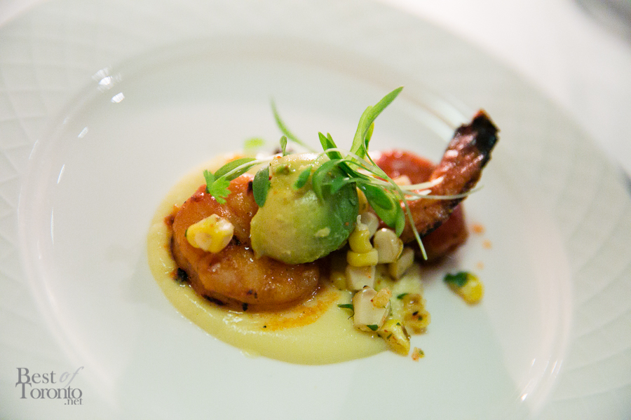 - “Camarones a la Diabla” grilled shrimp with fresh corn puree, arbol guajillo adobo