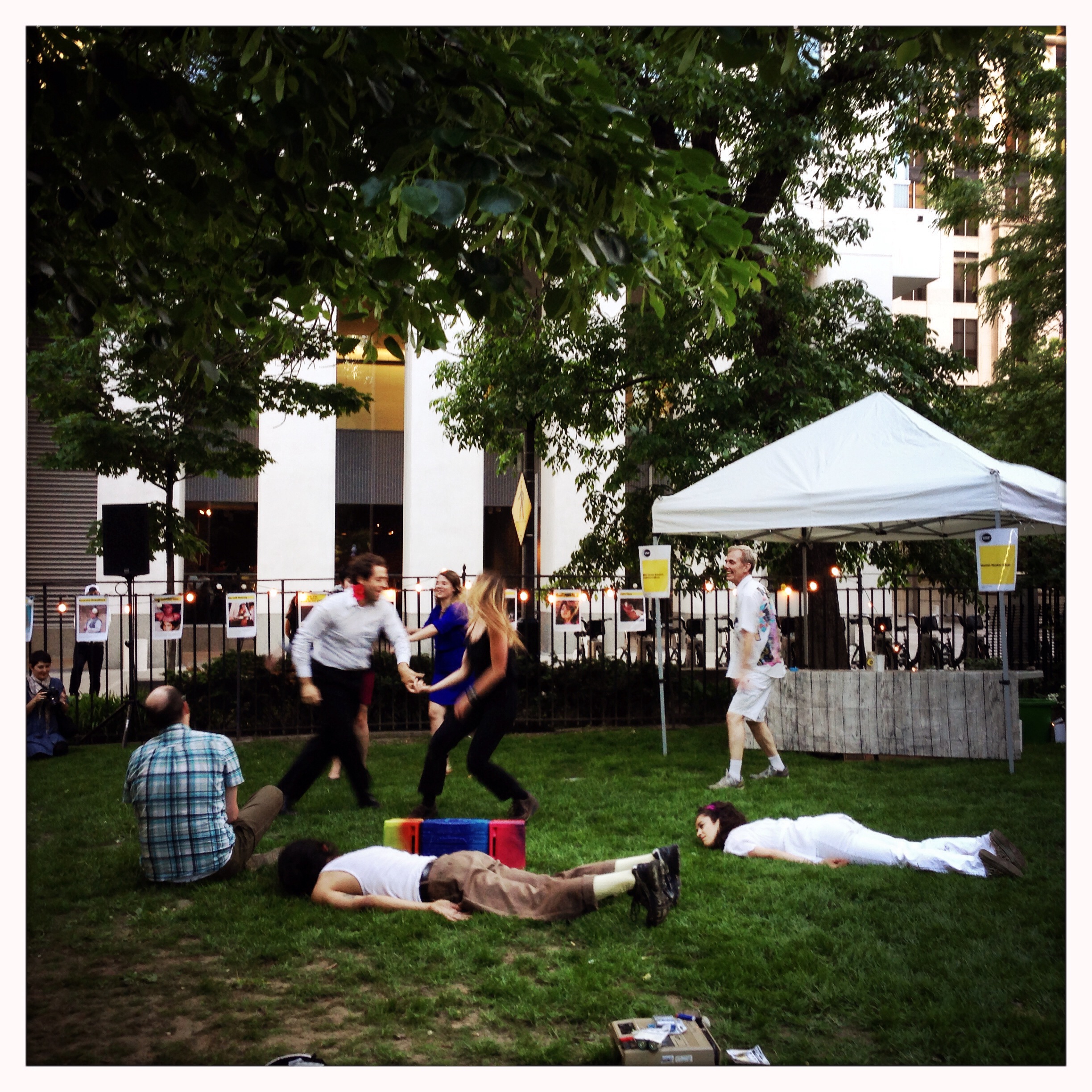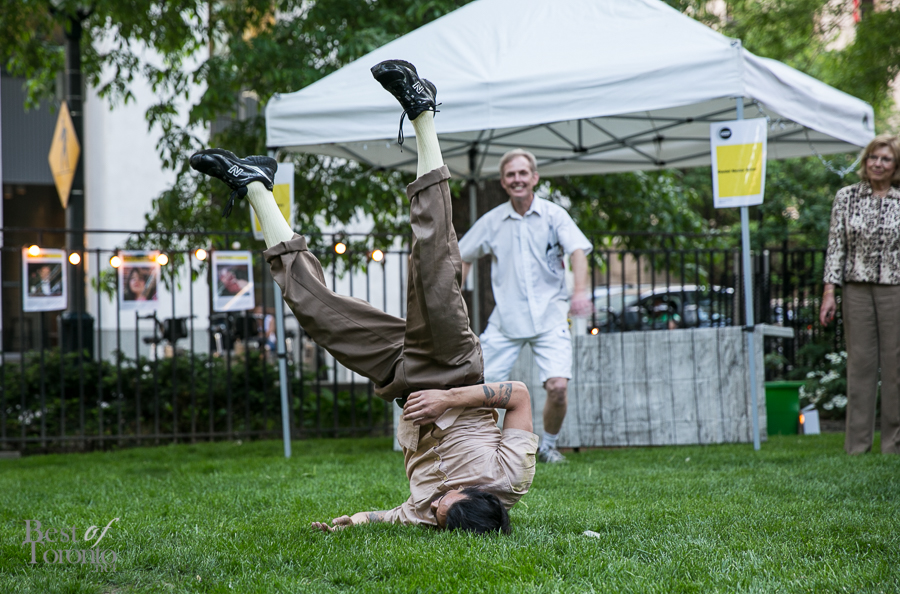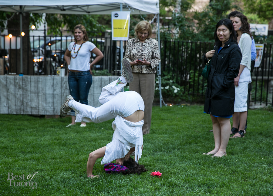 As we took in the splendor of an early summer evening, the night’s performance continued with the seductive voice of Regina of Light Fires, as well as a fun and quirky dance rendition by artist Benjamin Kamino and friends. As an abstract dancer and choreographer, Ben conjured a dance routine where his moves would change according to the mood of the music; other performers happily joined him. The audience is also able change the music, thereby controlling and contributing to the performance.