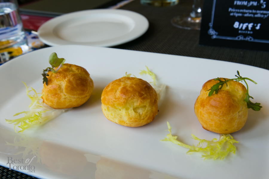 Gougère – a choux pastry filled with goat cheese mousse infused with herb garlic and lemon | Photo: Nick Lee