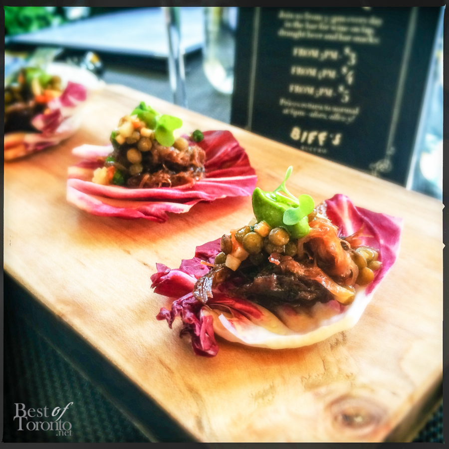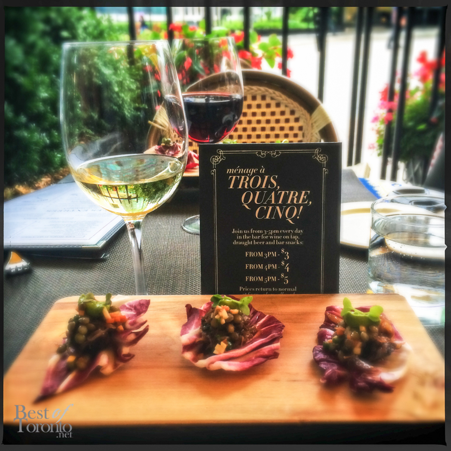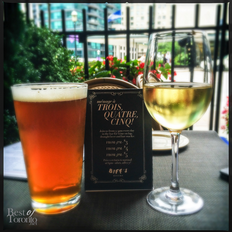 Toronto has a lot of great places to go for post-work socializing and Biff’s Bistro is one of them. While the $1 oysters after 5 pm has been available for a while, Biff’s Bistro has added even more reason to visit for happy hour with it’s new “Ménage à Trois, Quatre, Cinq” promotion.