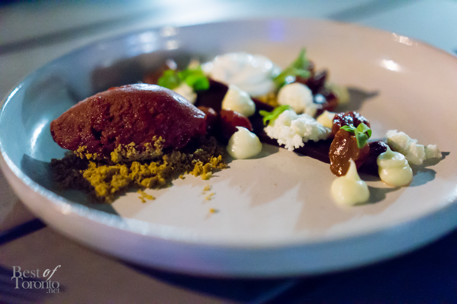 Lastly came the dessert, which reminded me of a deconstructed cherry cheesecake. It consisted of cherries, graham cracker, white chocolate, and buffalo ricotta. Like many deconstructed dishes, you need to taste all of the components together to experience this dessert fully. It was a delicious ending to the night.