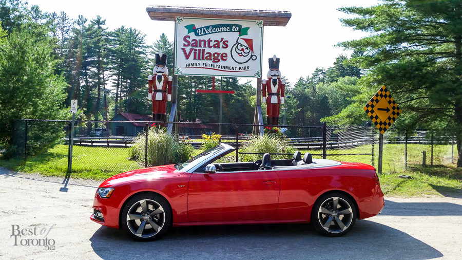 - Parking the Audi S5 Cabriolet in front of Santa’s Village in Bracebridge. Photo snapped with the Samsung Galaxy S5.